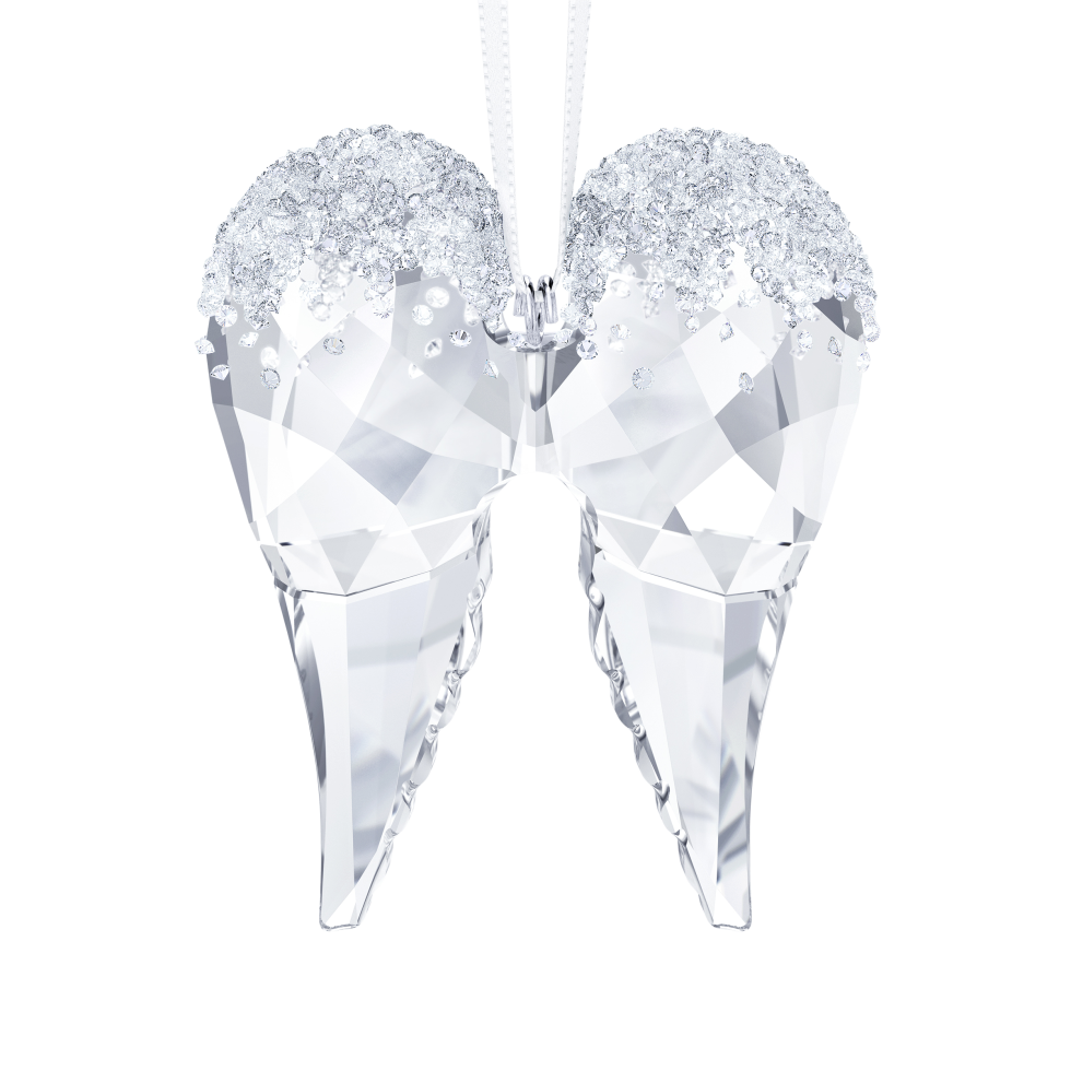 Your décor will really take flight with the stunning Angel Wings Ornament. Sparkling impressively with 208 facets, the brilliant clear crystal design by Viktoria Holzknecht is dusted with small crystals with the Moonlight effect. Set on the upper part of the wings by hand, the crystal rocks add a unique finish to your one-of-a-kind piece. Dangling from a white satin ribbon, the wings can be hung on your festive tree or in the window of your home. A perfect gift for a loved one. Decoration object. Not a toy. Not suitable for children under 15.