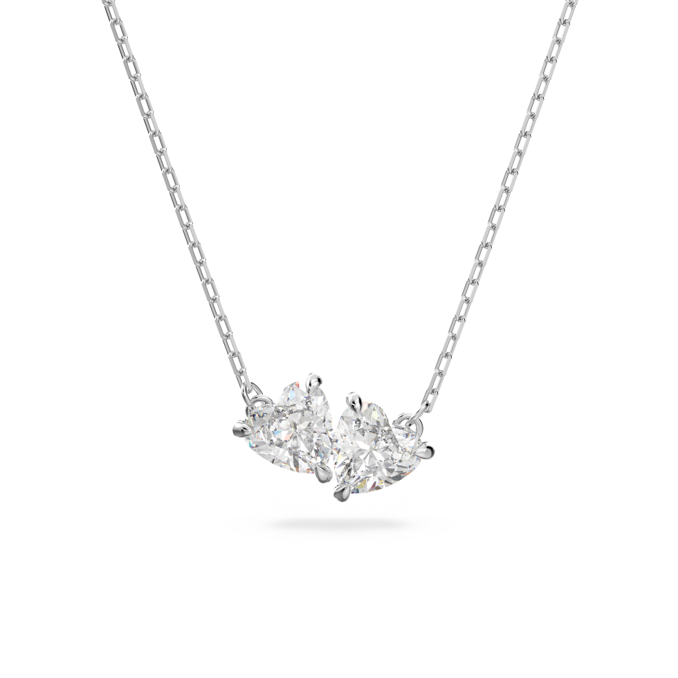 Classic design with a modern twist: This Swarovski necklace from our Mesmera Collection features beautiful stones shaped like twin hearts. Rhodium plating complements the chain’s understated elegance with a touch of romance. This charming long necklace is the perfect gift for a loved one.