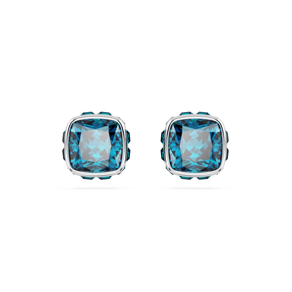 Birthstone stud earrings, Square cut, December, Blue, Rhodium plated