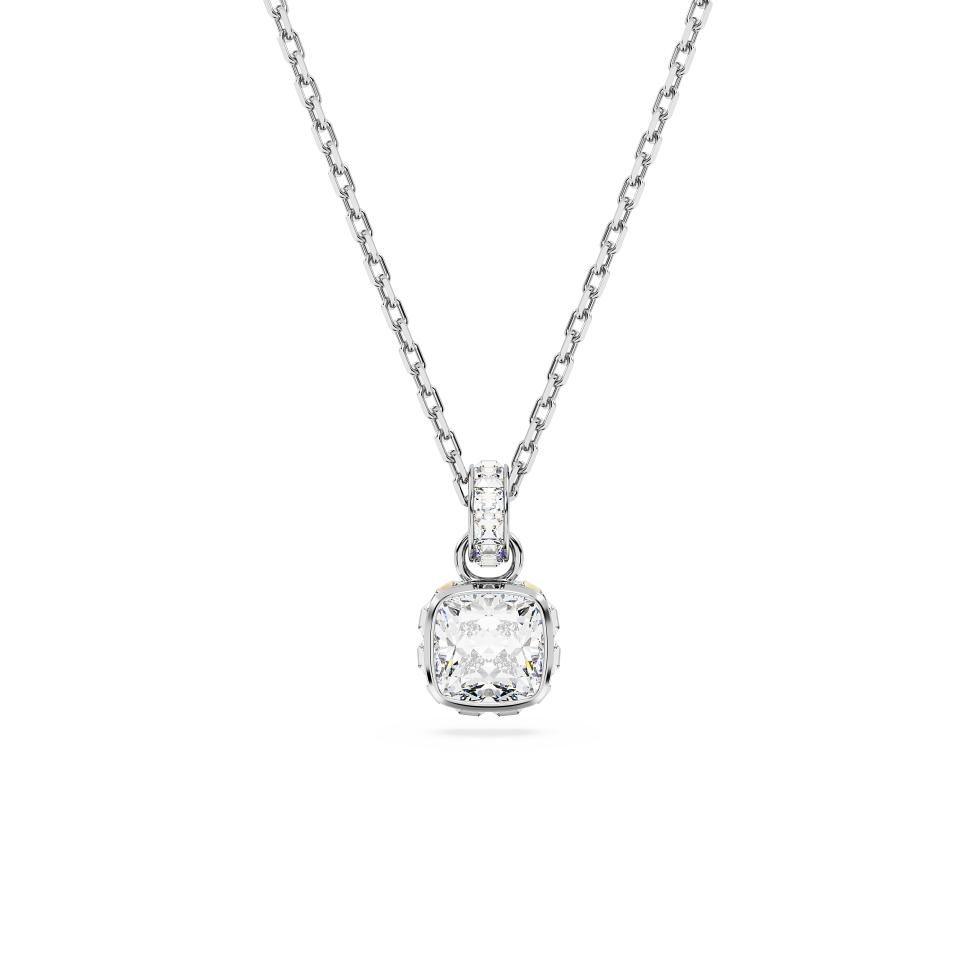 Birthstone pendant, Square cut, April, White, Rhodium plated