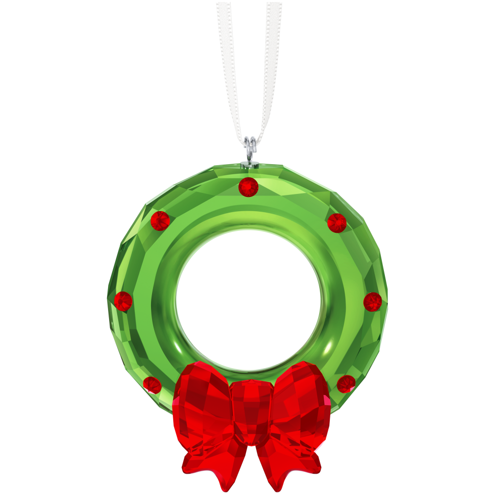 Add a joyful sparkle to your holiday decor with this charming Christmas wreath ornament in traditional festive colors. Beautifully crafted in red and green crystal, it comes on a white satin ribbon. Use it to decorate your Christmas tree or festive table, hang it in a window for amazing light reflections, or present it on Swarovski’s Christmas Ornament Home Display. An ideal gift. Decoration object. Not a toy. Not suitable for children under 15.