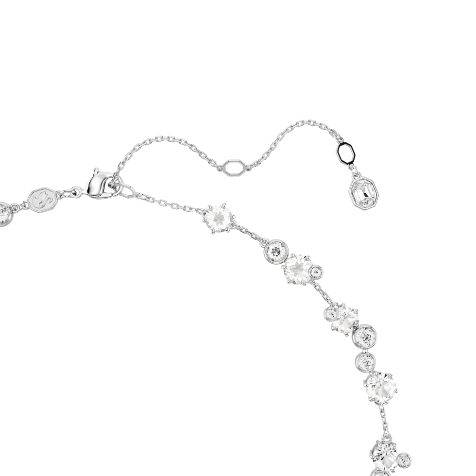 Bring starlike wonder into your style with this scintillating Constella necklace. The all-around design features round-cut crystals of various sizes, presented in a combination of bezel and prong settings. It has a beautiful, scattered appearance that glows brightly within the rhodium plated surrounding. Wear alongside the matching Constella bracelet to maximize the cosmic effect.
