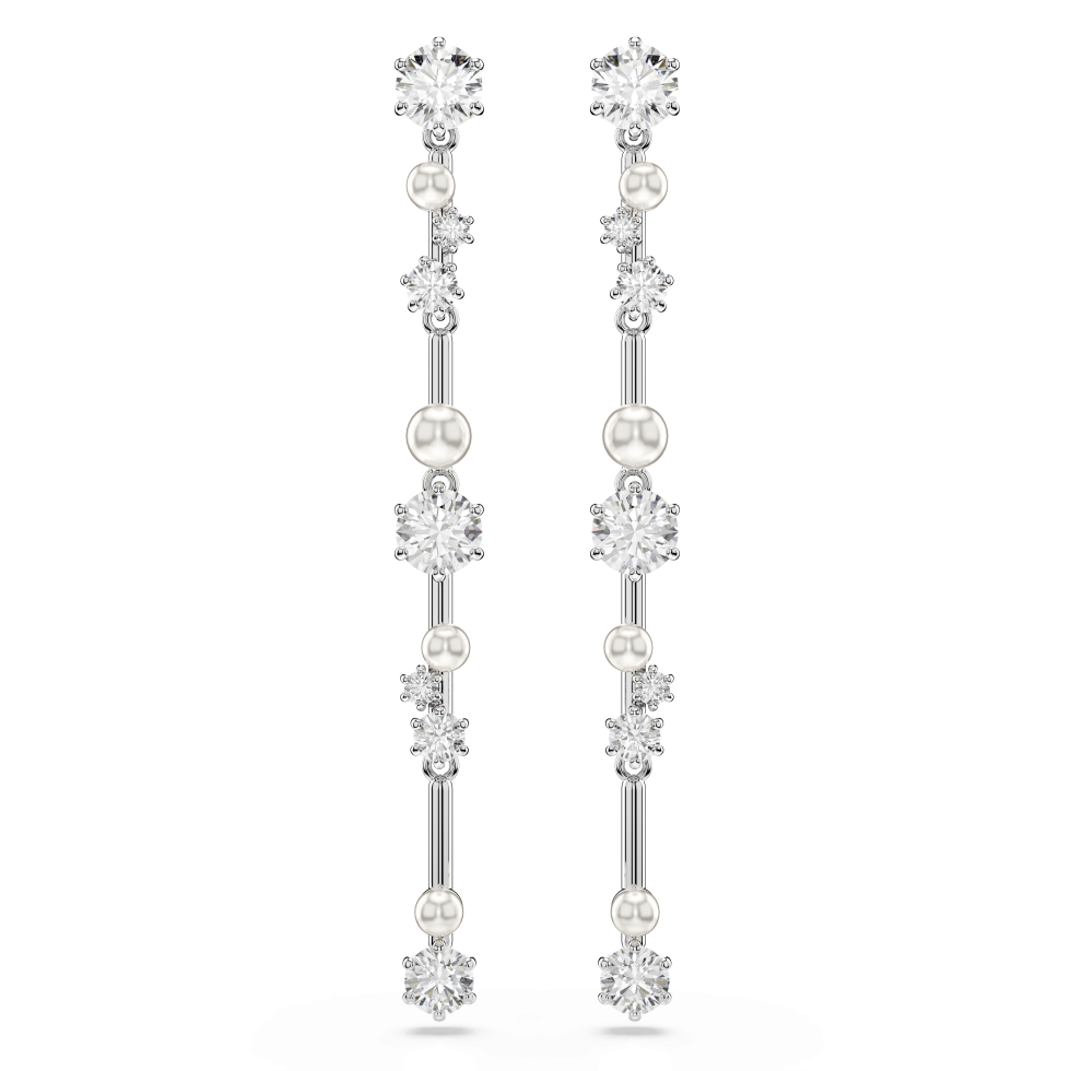 Constella drop earrings, Crystal pearl, Round cuts, White, Rhodium plated
