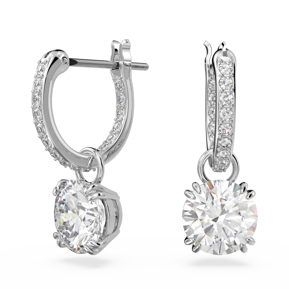 Stilla drop earrings, Round cut, White, Rhodium plated