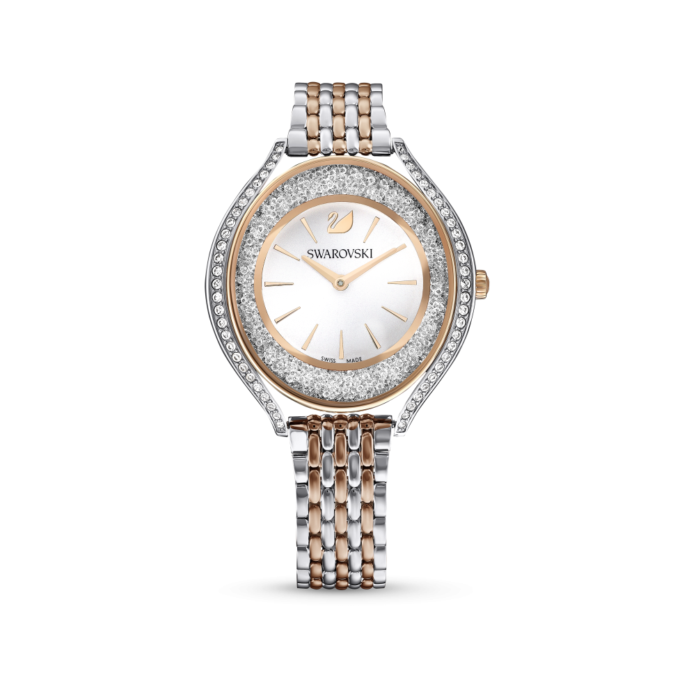 Crystalline Aura watch, Swiss Made, Metal bracelet, Rose gold tone, Mixed metal finish