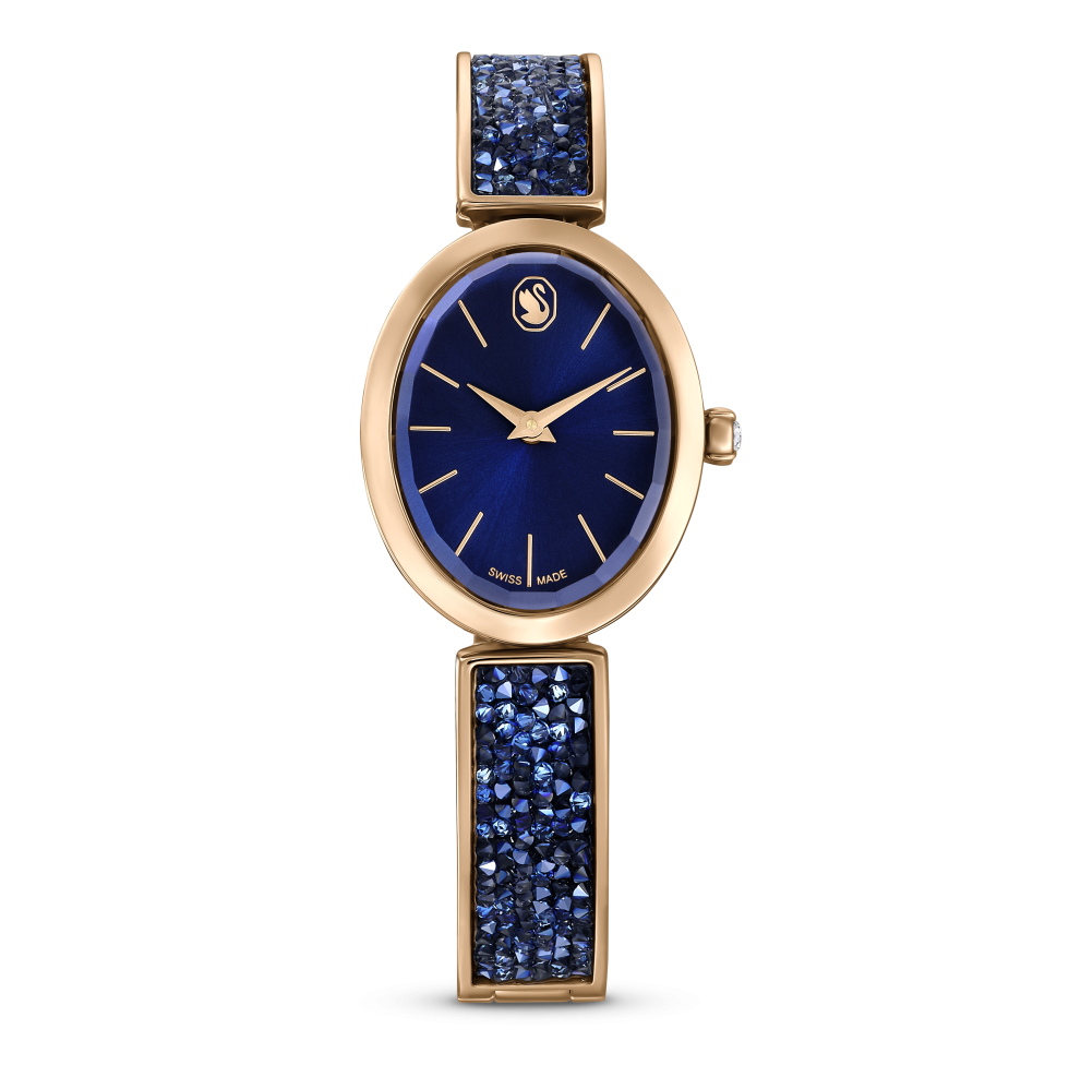 Crystal Rock Oval watch, Swiss Made, Crystal bracelet, Blue, Rose gold-tone finish