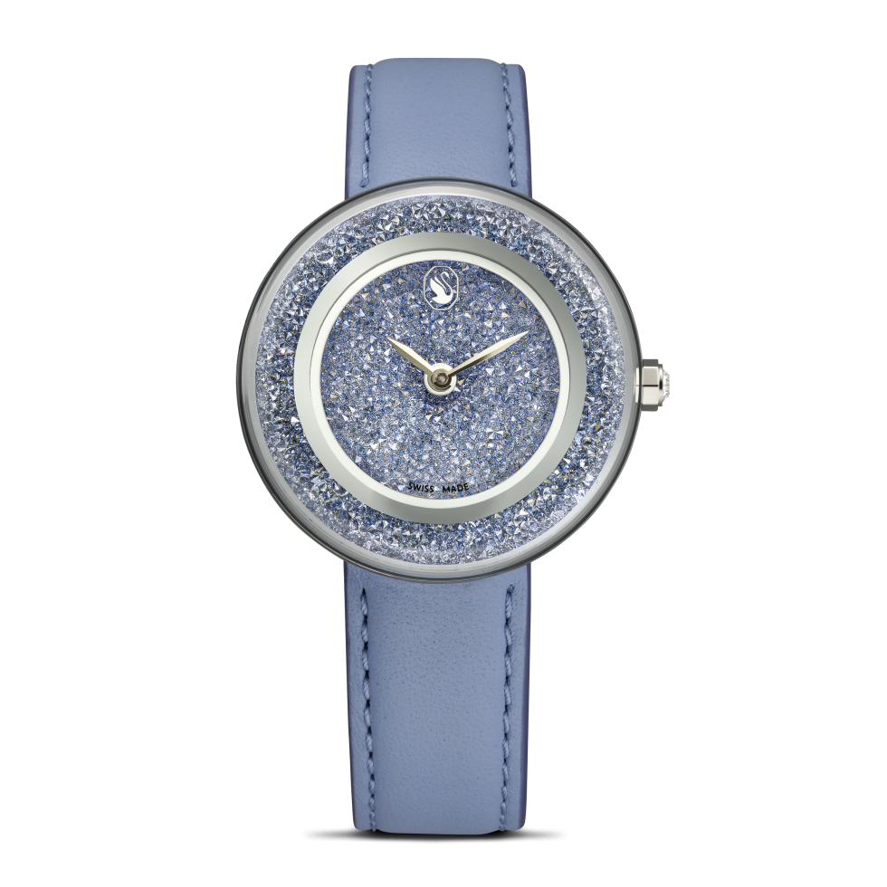 Crystalline Lustre watch, Swiss Made, Leather strap, Blue, Stainless Steel