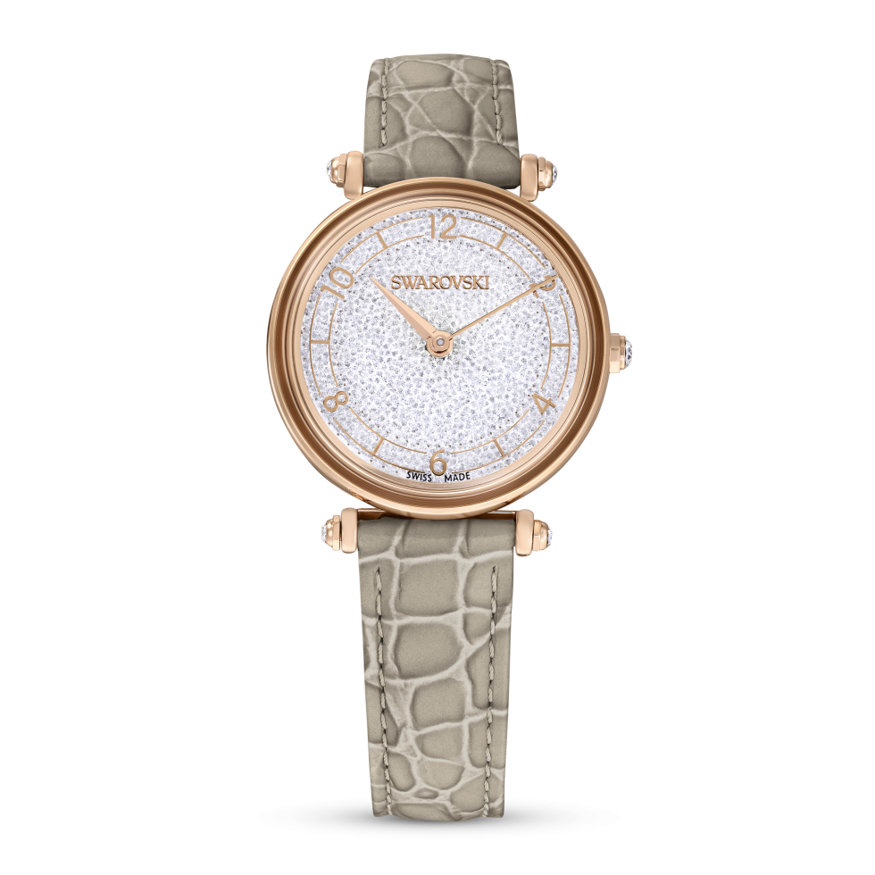 Crystalline Wonder watch, Swiss Made, Leather strap, Beige, Rose gold-tone finish