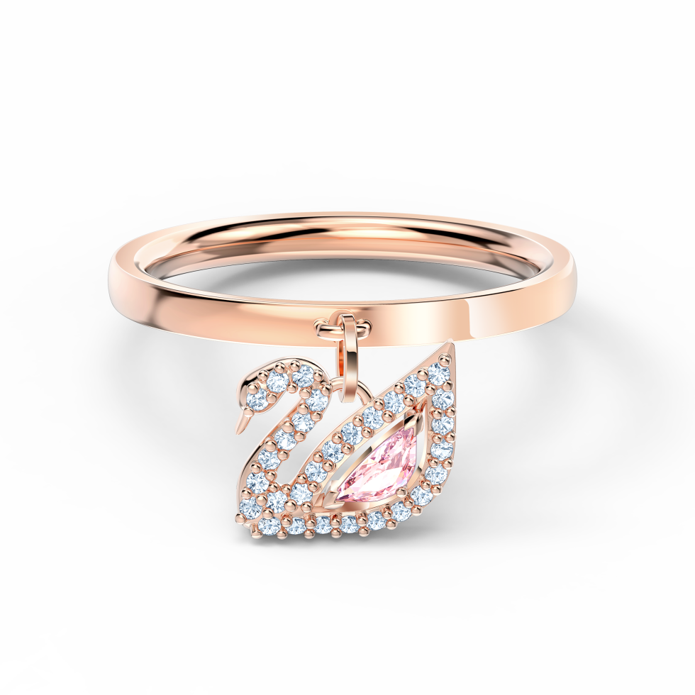 Swan ring, Swan, Pink, Rose gold-tone plated