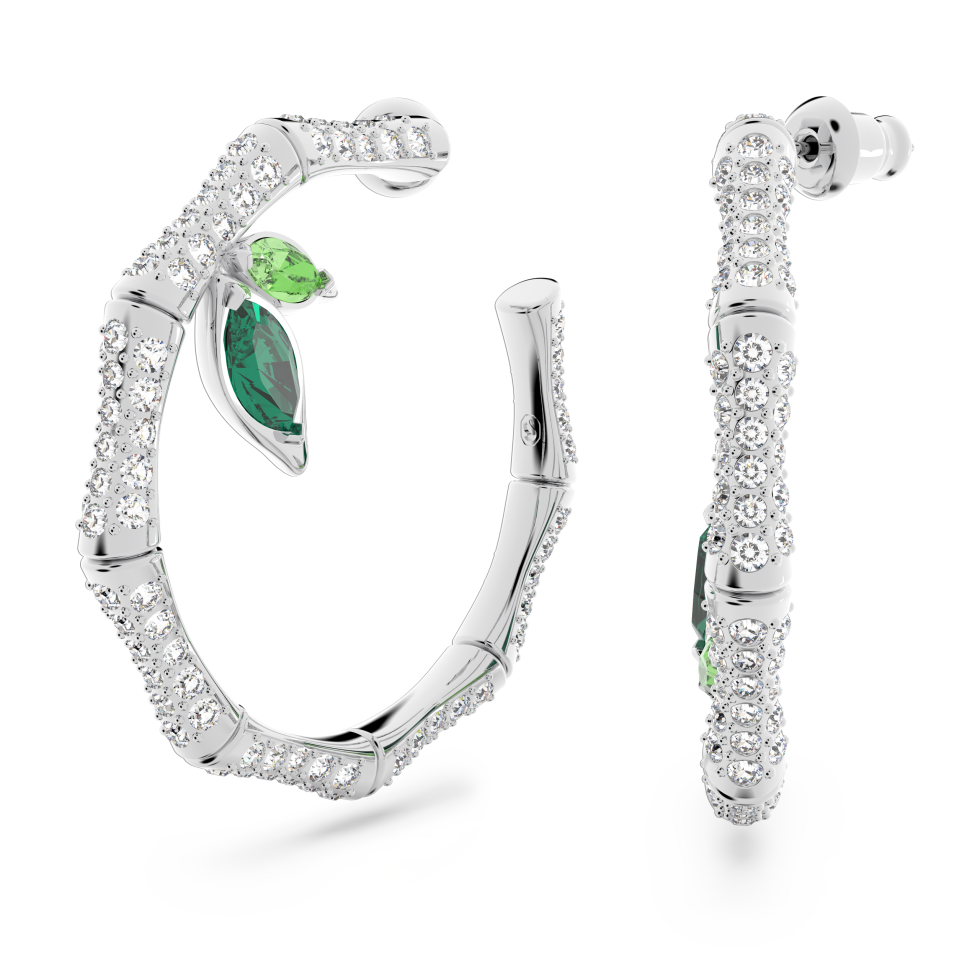 Dellium hoop earrings, Bamboo, Green, Rhodium plated