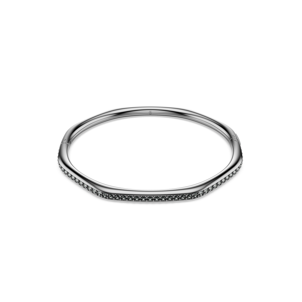 With its deep metallic tones, this Dextera bangle makes a chic statement. The slender octagonal design is ruthenium plated and accented with a row of black crystals in a refined prong setting. Style yours solo or with a matching pendant and signet ring to coordinate the sleek look.
