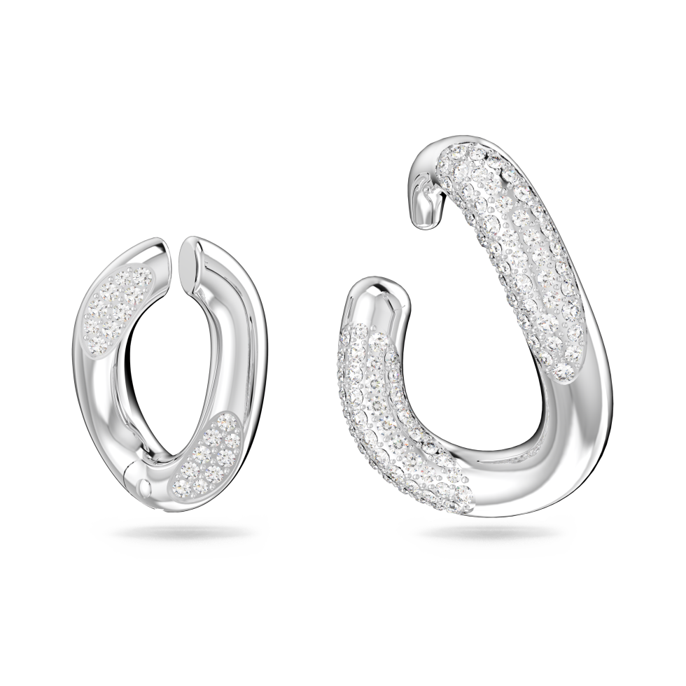Dextera ear cuff, Set (2), Asymmetrical design, White, Rhodium plated