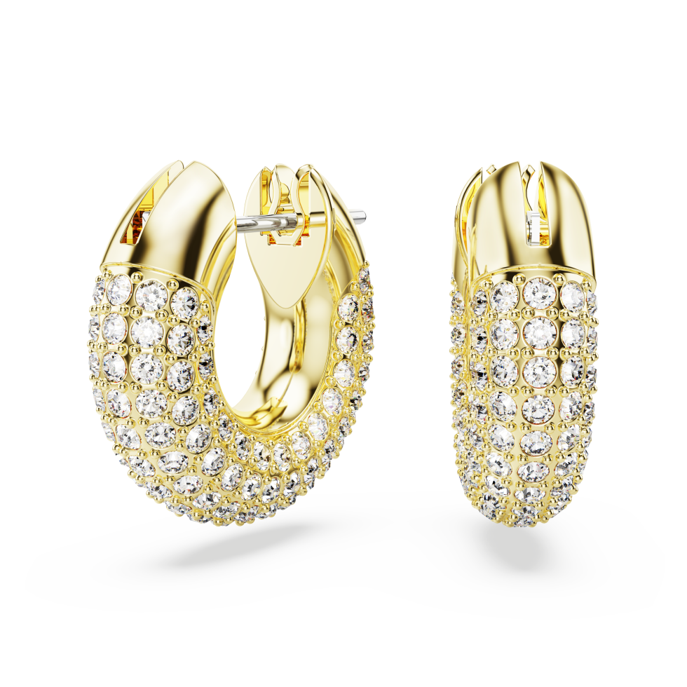 A modern spin on classic hoop earrings, this genderless pair will lend a dynamic touch to any outfit. Its sculptural design celebrates Swarovski’s iconic Pavé technique with glittering foiled crystals set against a sleek gold-tone plated frame. Not just for daytime, wear this statement duo with after-dark looks, too. These earrings are part of the Dextera Family, designed for Collection III.