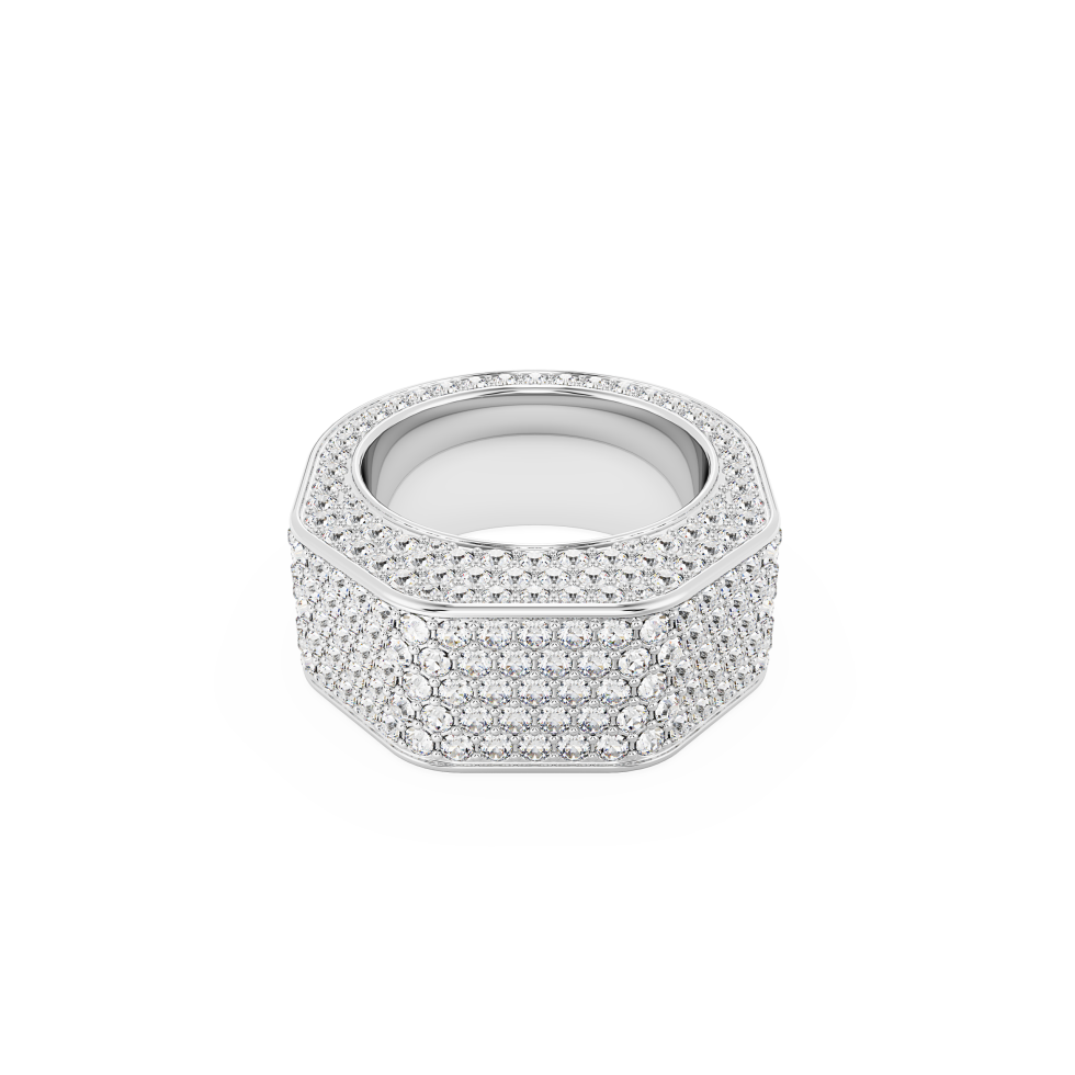 Dextera cocktail ring, Octagon shape, Pavé, White, Rhodium plated
