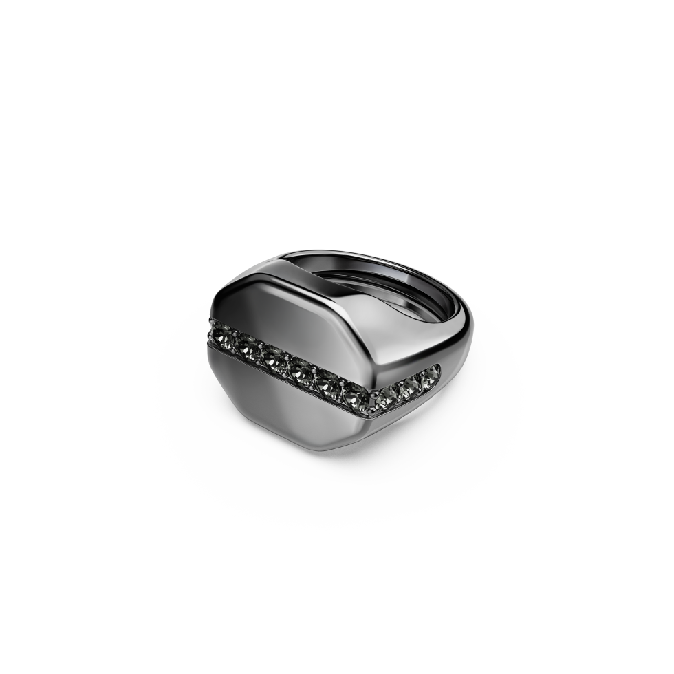 Dextera ring, Octagon shape, Round cut, Black, Ruthenium plated