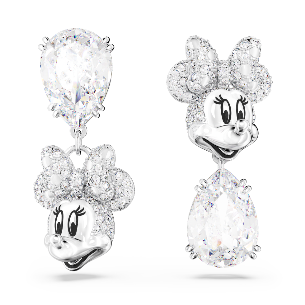 Disney Minnie Mouse drop earrings, Asymmetrical design, White, Rhodium plated