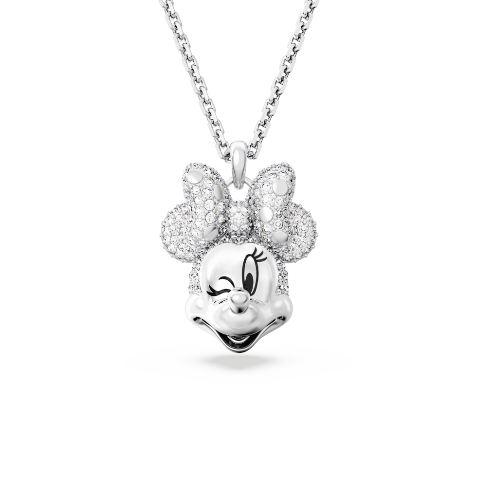 Tie your look in a beautiful bow with this winking Minnie Mouse-inspired pendant celebrating 100 years of Disney. The rhodium plated design features a pavé of clear crystals, and combines legendary imagination with Swarovski savoir-faire. Perfect for anyone with their own playful style.