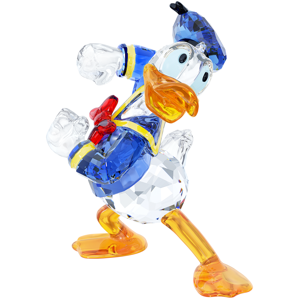 The iconic Disney character will brighten up any room. The combination of clear and colored crystal creates a sparkling contrast that will not only enchant Disney fans. Donald Duck matches perfectly with Swarovski’s Daisy Duck. Decoration object. Not a toy. Not suitable for children under 15.