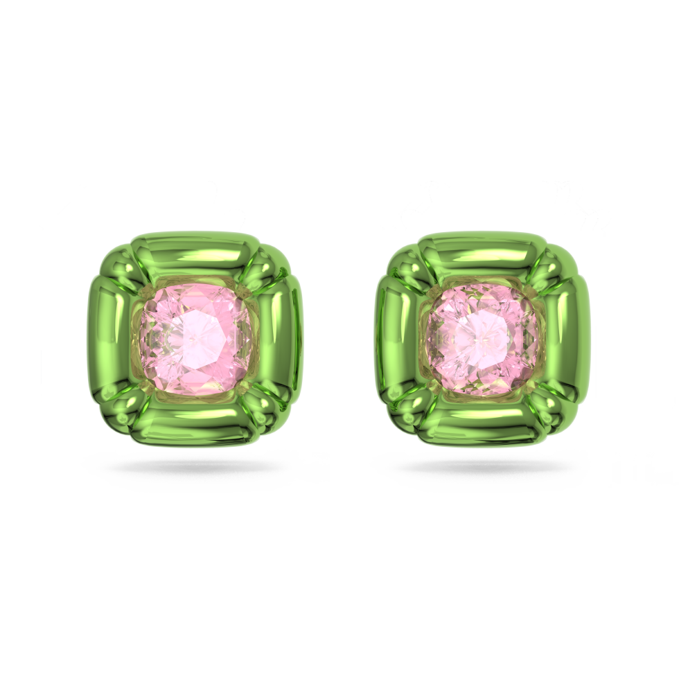 Candy box colors collide with Pop Art-inspired shapes in these stud earrings. Single precision cut crystals are cushioned in green glossy molded settings, for an unexpected and playful finish. Add a pop of fun to any look by wearing these alone, or exercise your experimental side and wear them with other pieces from the Dulcis family. These earrings are part of the Dulcis family, designed by Creative Director Giovanna Engelbert for Collection I.