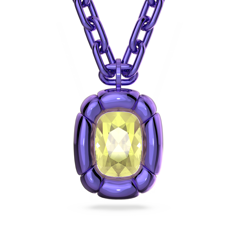 This playful pendant necklace references sculpture from the Pop Art movement, and is expertly formed from a single precision cut crystal cushioned in a violet glossy molded setting, suspended on a delicate tonal metal chain. Wear alone with a simple white T-shirt, or layer it up with other necklaces from the Dulcis family for a candy colored statement. This necklace is part of the Dulcis family, designed by Creative Director Giovanna Engelbert for Collection I.