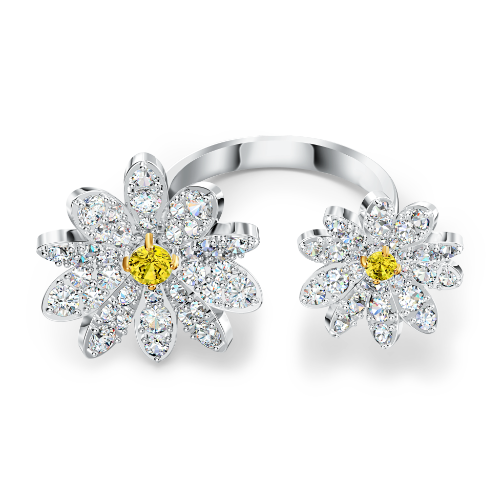 A true delight for flower lovers, this Swarovski ring impresses through an artful mix of classic and contemporary design. Its on-trend double silhouette presents two stylized flowers with bright yellow stones sparkling in their centers. The petals’ rhodium plating creates a unique look, making it an especially charming gift for fashion-conscious women.