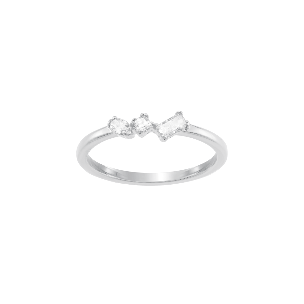 Mix and match this super-stackable ring with other Swarovski styles for a personalized, on-trend look. Featuring different cuts, the timeless rhodium-plated design will quickly become one of your everyday essentials. Pair it with a chunky cocktail ring for a fashion-forward mini-maxi contrast.