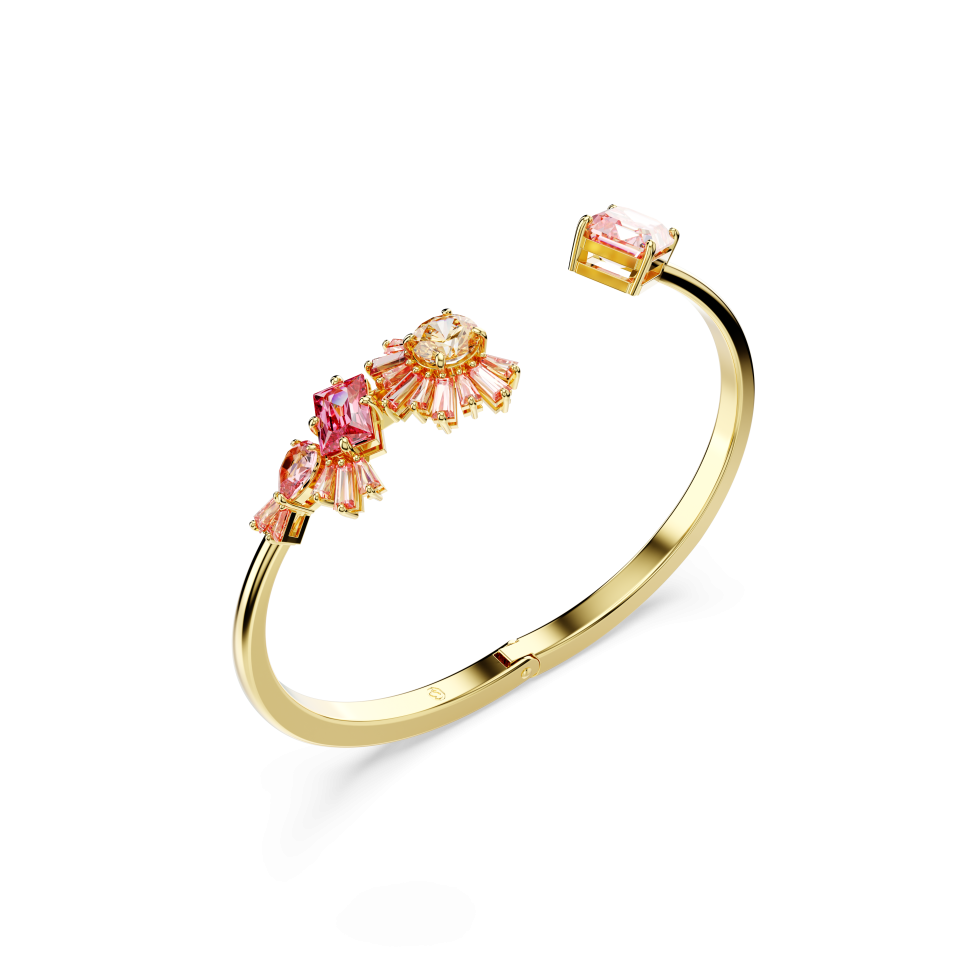 Gema bangle, Mixed cuts, Pink, Gold-tone plated