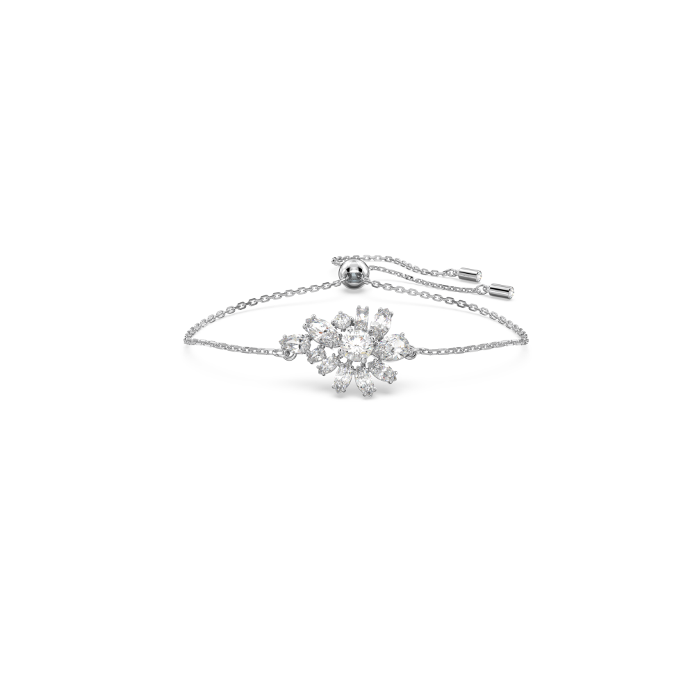 Gema bracelet, Mixed cuts, Flower, White, Rhodium plated