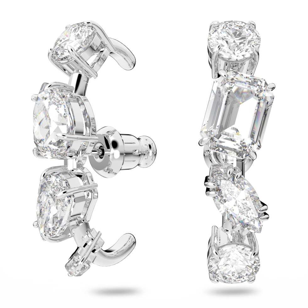 Gema ear cuffs, Mixed cuts, White, Rhodium plated