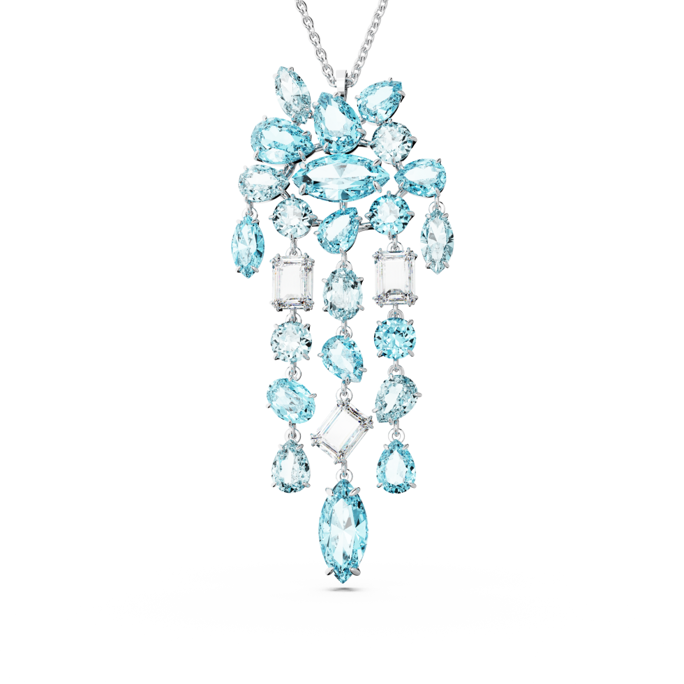 Gema pendant, Mixed cuts, Blue, Rhodium plated