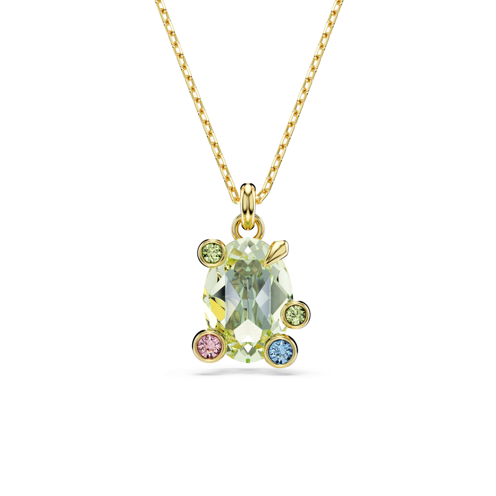 This effervescent Gema pendant will fill your everyday style with color. Suspended from a delicate gold-tone plated chain, the central motif features a large green crystal surrounded by smaller crystals in a joyful bubble prong setting. The expert faceting and various hues ensure this pendant catches the eye at all times. Pair it with a matching bracelet to maximize the energy-boosting effect.
