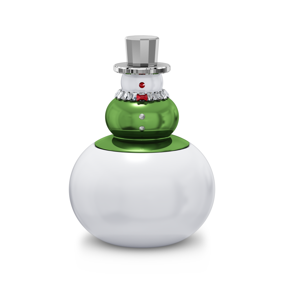 Celebrate the joys of the season with this Snowman Candy Bowl from Swarovski’s Holiday Cheers collection. Depicting a modern interpretation of everyone’s frosty favorite, it is crafted in chrome-plated metal and white and green-lacquered metal. Mirror and chrome-effect, clear crystal decorations, red crystal and pearlized white lacquered metal detailing complete the design. Shining with 498 facets, it is full of charm and color and would make a lovely gift. Use it to store candy or other sweet treats. Decoration object. Not a toy. Not suitable for children under 15.