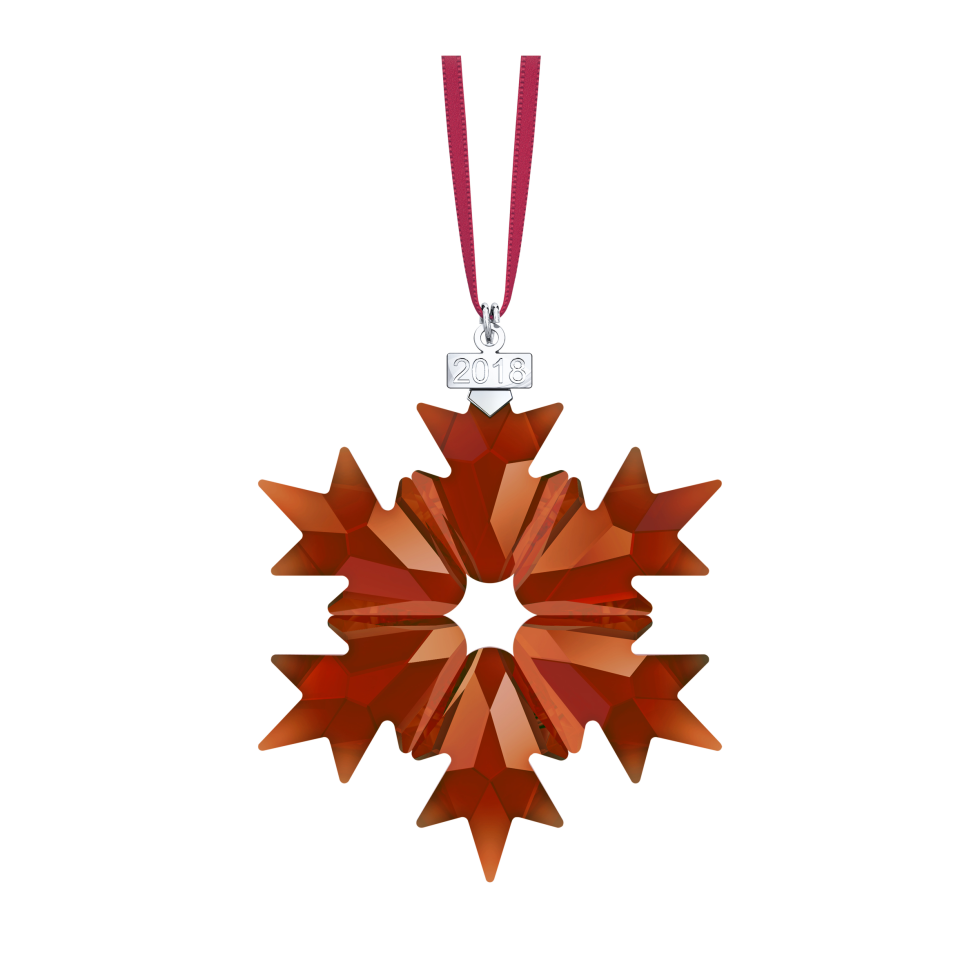 Taking inspiration from the color of holly berries and Santa’s Christmas suit, this is a vibrant red version of our much-loved Annual Edition Ornament. Only available this year, it shows ‘2018’ on a polished metal tag. The snowflake design has been beautifully crafted with 156 facets in satin-coated red crystal, accented with our magma color effect for an extra element of warm glamour. The ornament comes on a red silk ribbon and would look perfect hanging on your tree or in a window this festive season. A lovely gift to celebrate any special moments this year, from weddings and anniversaries to the birth of a child. Decoration object. Not a toy. Not suitable for children under 15.