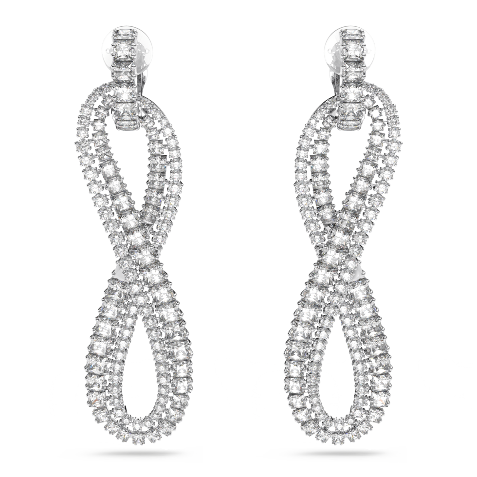 Hyperbola clip earrings, Infinity, White, Rhodium plated