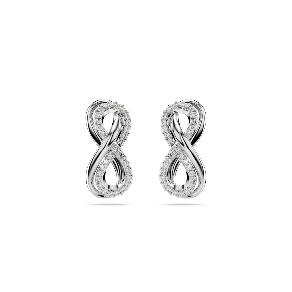 Hyperbola stud earrings, Infinity, White, Rhodium plated