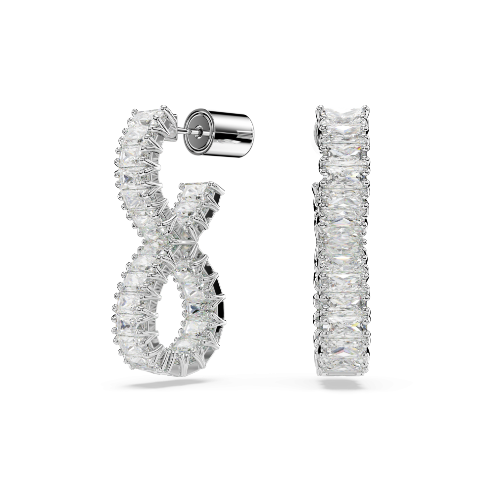 Hyperbola hoop earrings, Infinity, White, Rhodium plated