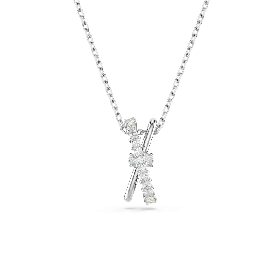 Hyperbola pendant, Mixed cuts, Twist, White, Rhodium plated
