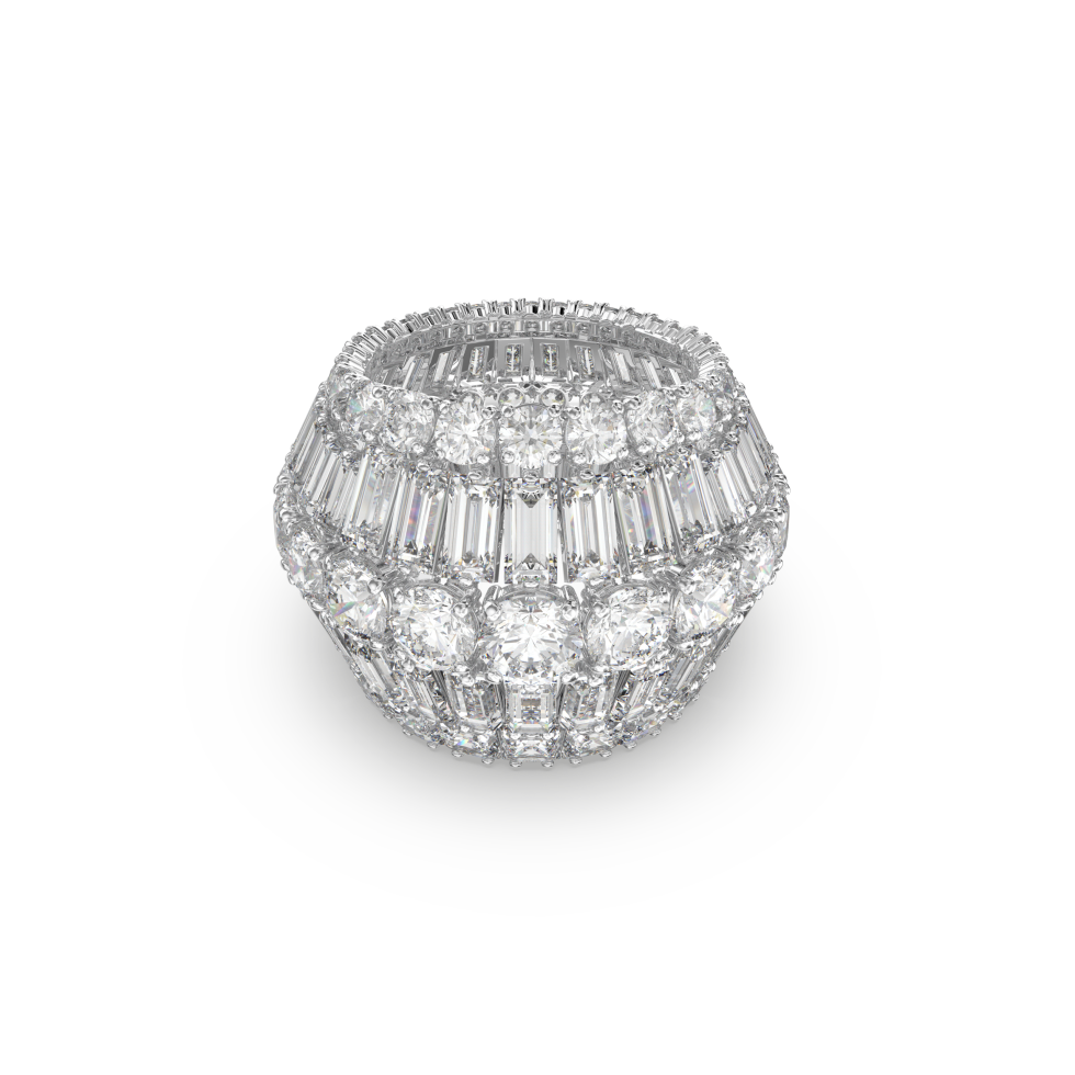Hyperbola cocktail ring, Mixed cuts, White, Rhodium plated