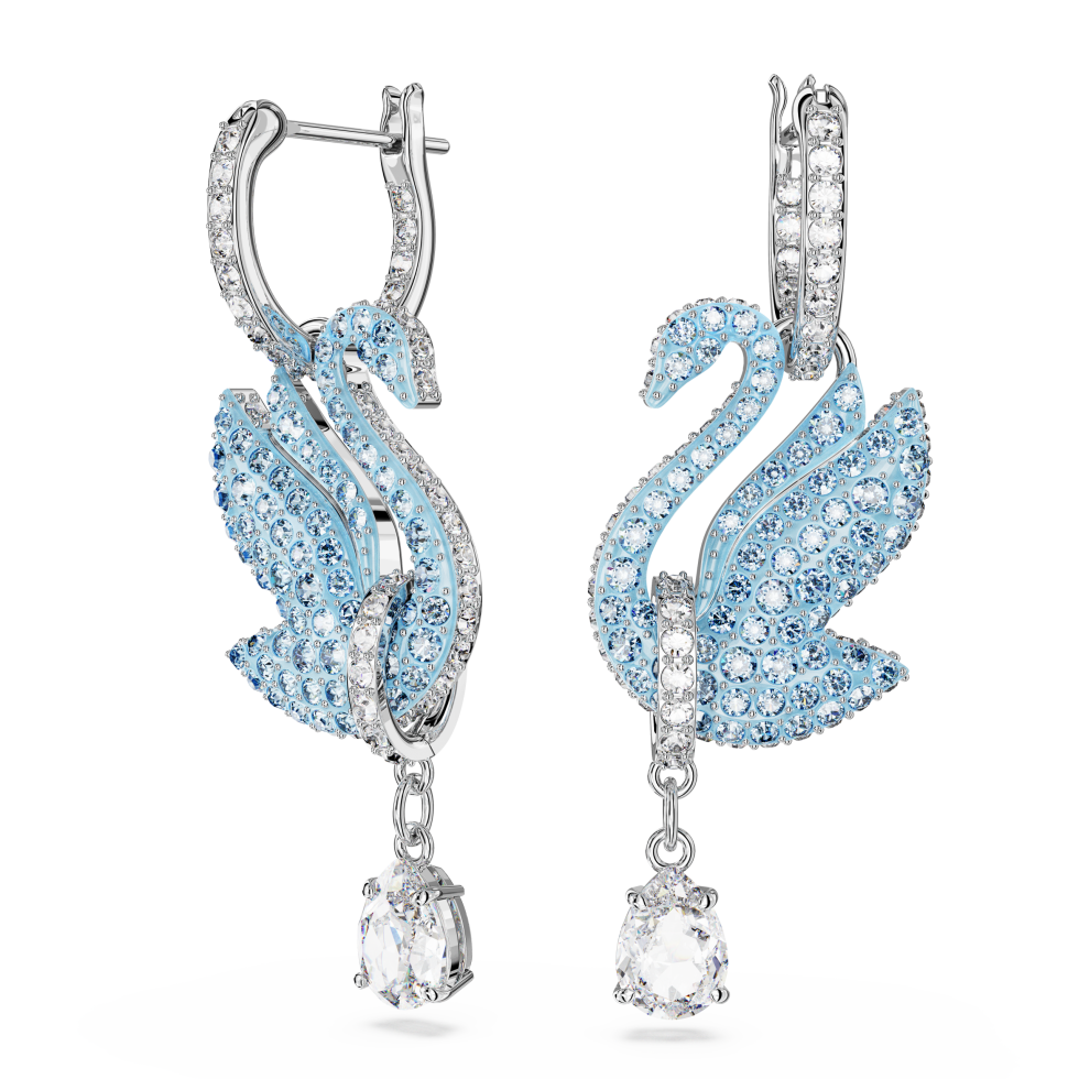 Swan drop earrings, Swan, Blue, Rhodium plated