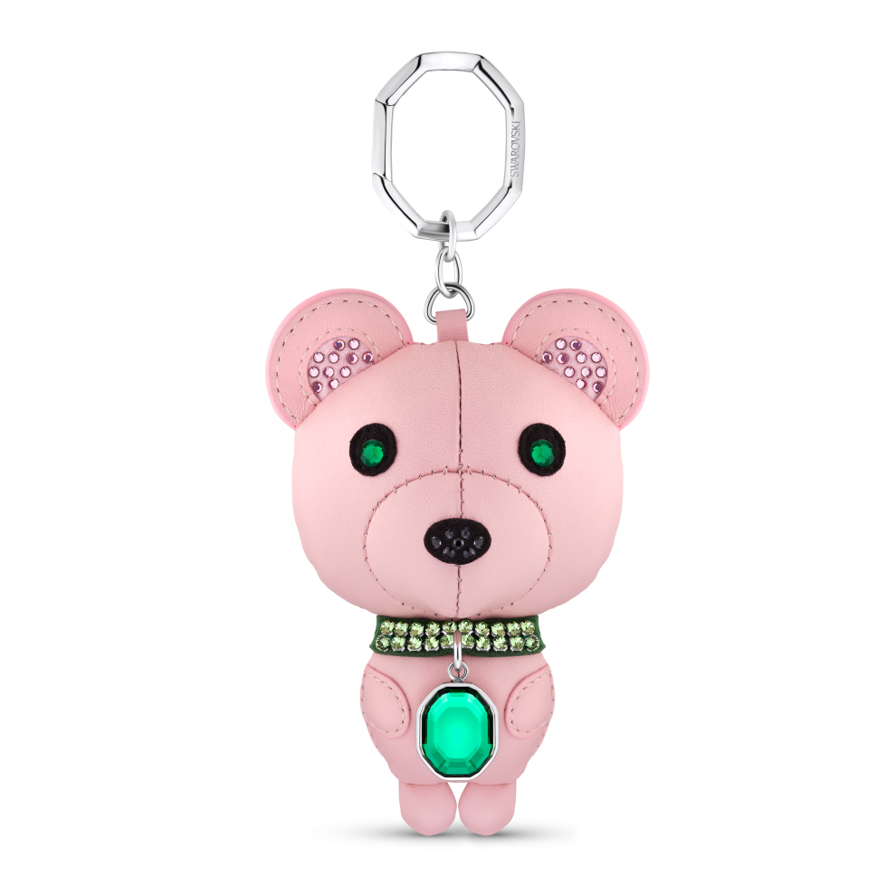 The loveable and popular Kris Bear has been brought to life as an adorable 3D keyring. The cute pink character hangs from an octagonal ring, and its features are picked out in shining green crystals. To enhance its style, the bear has been given a pendant to wear around its neck crafted from crystal mesh and an octagon-cut green stone. Not a toy. Not intended for use by children under the age of 15.