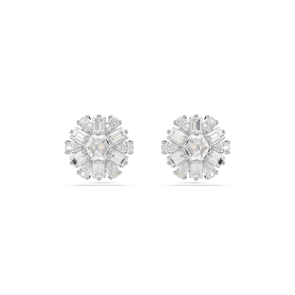 Idyllia stud earrings, Mixed cuts, Snowflake, White, Rhodium plated