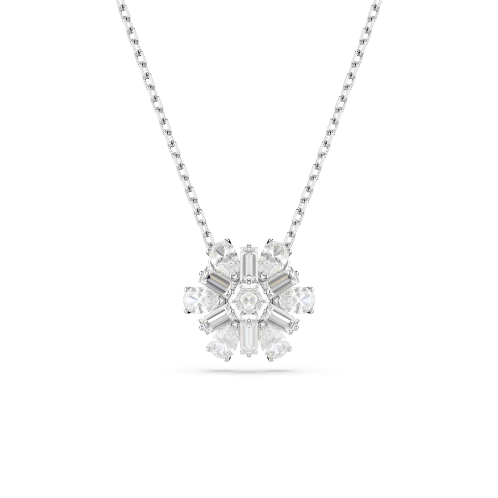 Idyllia pendant, Mixed cuts, Snowflake, White, Rhodium plated