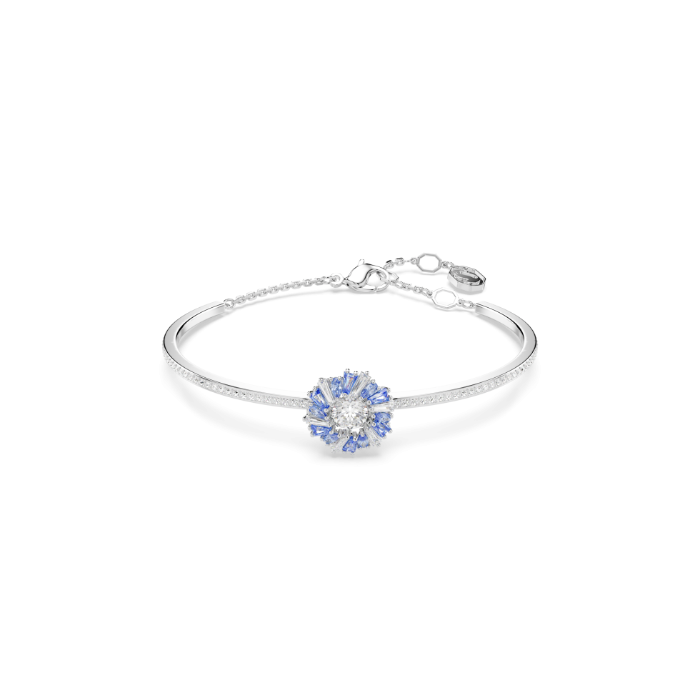 Idyllia bangle, Flower, Blue, Rhodium plated