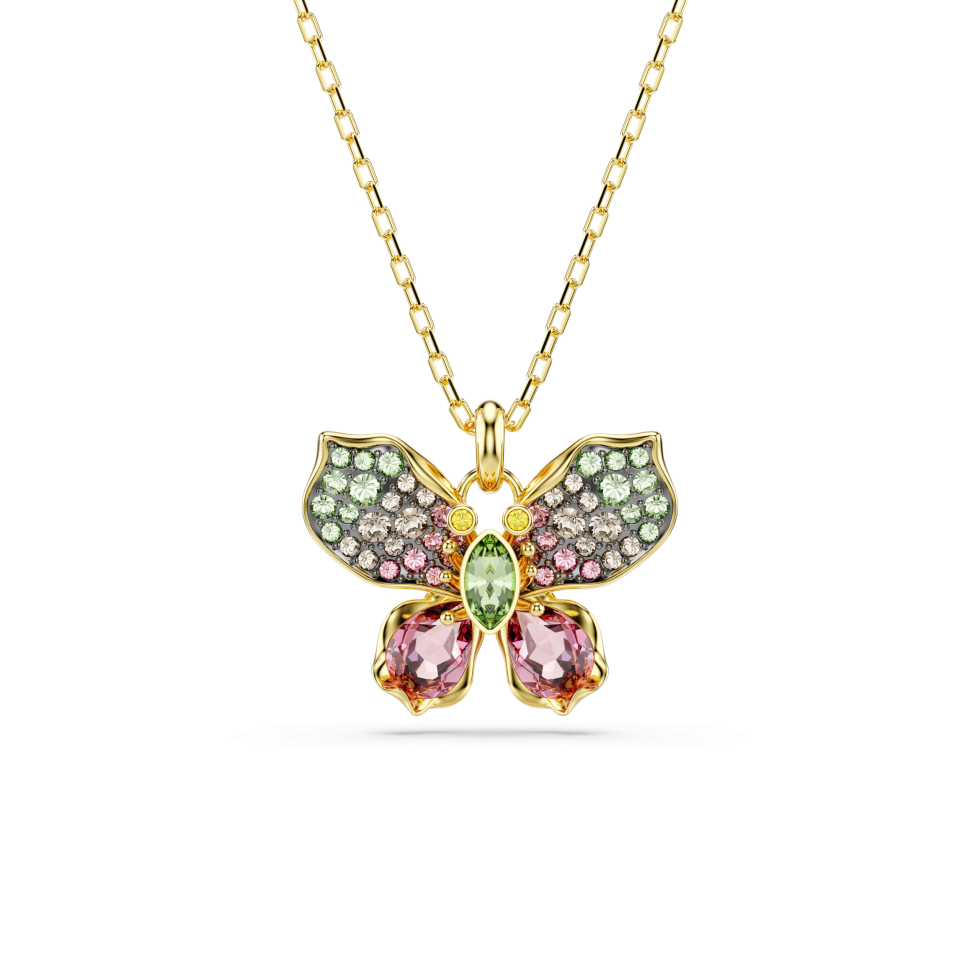 Idyllia pendant, Mixed cuts, Pavé, Butterfly, Multicolored, Gold-tone plated