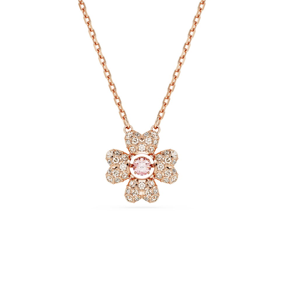 Maximize your look with this radiant pendant inspired by nature. The rose gold-tone plated design features a lucky clover motif crafted with a central pink Swarovski Zirconia and four leaves embellished with a pavé of clear crystals. A playful and wondrous necklace you can wear every day.
