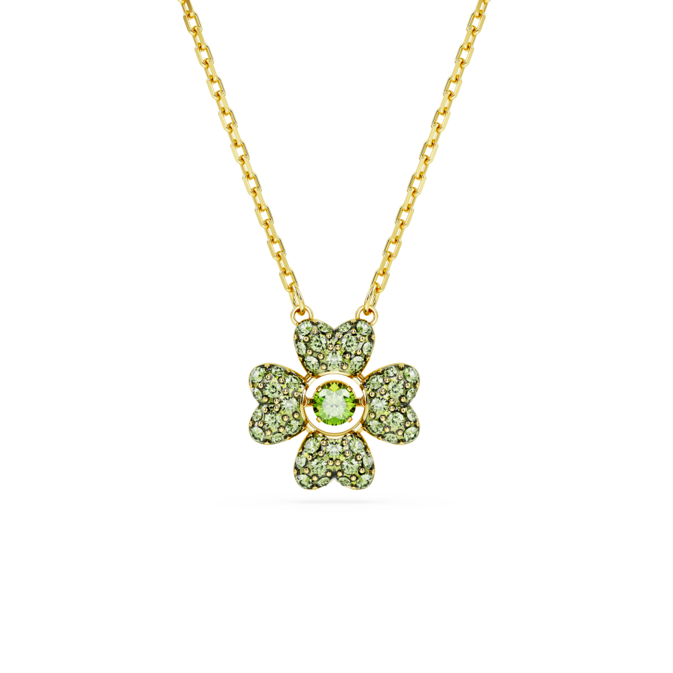Idyllia pendant, Clover, Green, Gold-tone plated