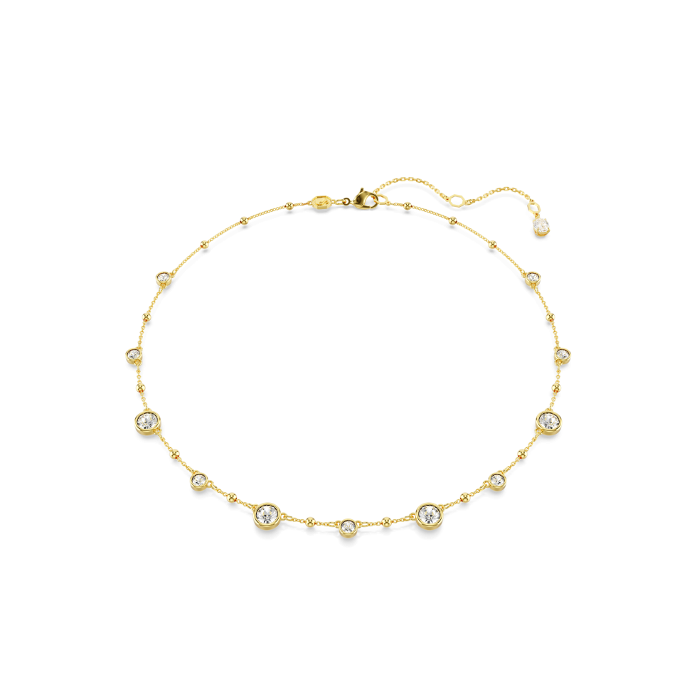 Imber necklace, Round cut, Scattered design, White, Gold-tone plated