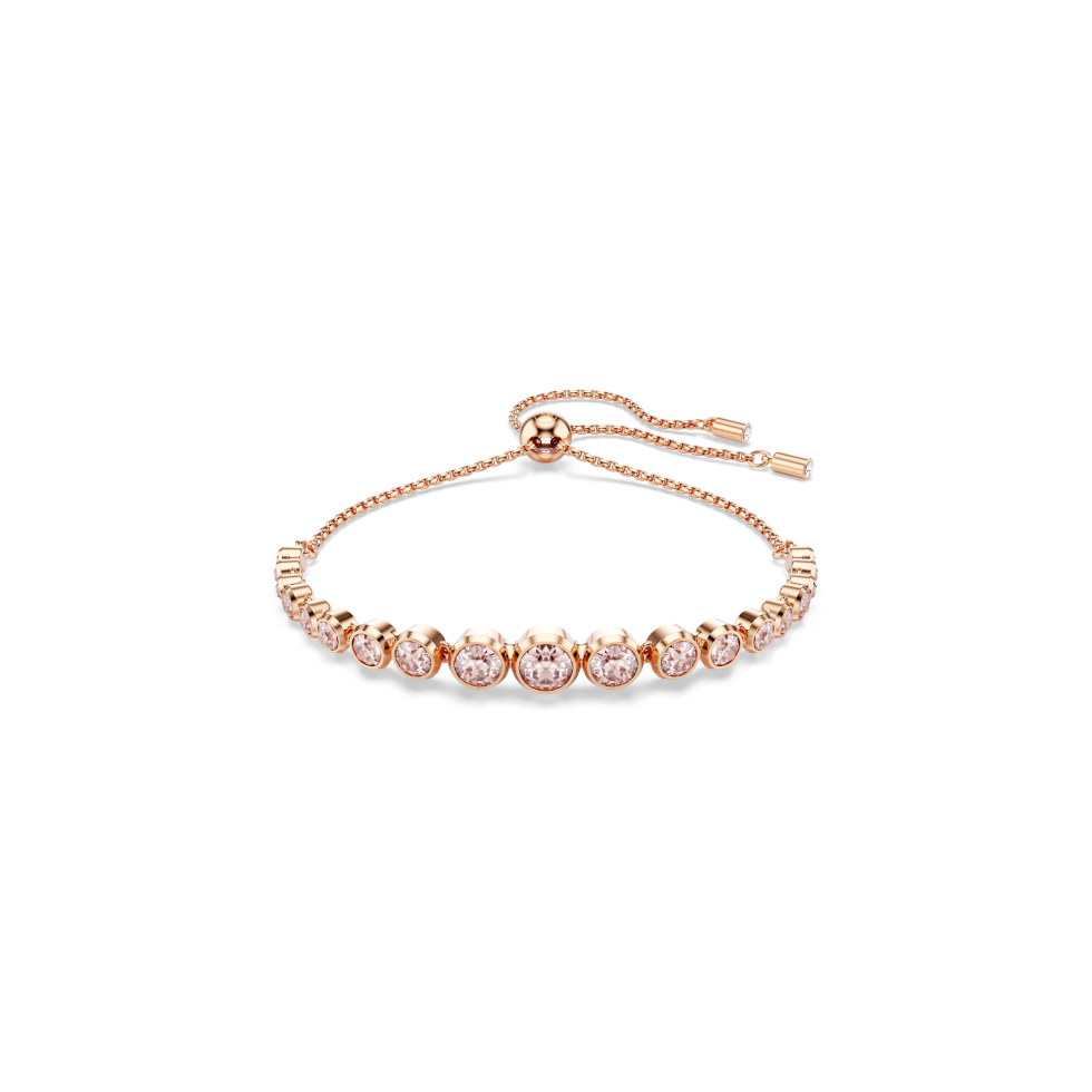 Made for everyday elegance, this rose gold-tone plated bracelet exudes the simplicity of the Imber family. The design features a gradient of round-cut Vintage Rose crystals, each placed in a modern bezel setting on a soft chain, with a sliding closure for easy wearability. Each delicate drop provides colorful sophistication for your wrist, giving you a go-to piece of jewelry that can be playfully stacked with other styles.