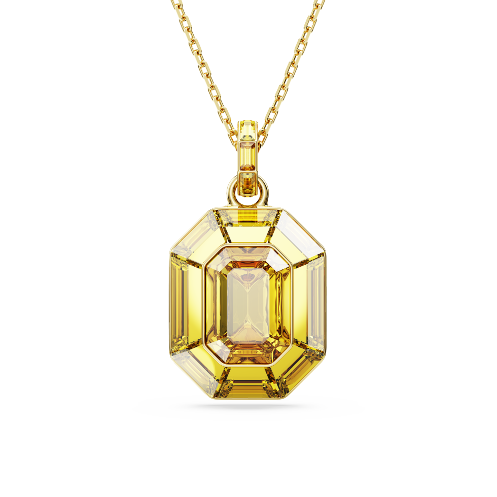 Crafted like a burst of sunshine, this Lucent pendant will place color and light at the center of your style. The design features a fully-cut yellow crystal, expertly faceted in Swarovski’s iconic octagon shape, attached to a bail with small baguette-cut yellow crystals. For ultra versatility, it can be worn on a metallic chain or a delicate fabric cord with an adjustable sliding mechanism, giving you various styling possibilities. Pair this pendant with Lucent’s matching yellow jewelry or wrap it up as a radiant gift.