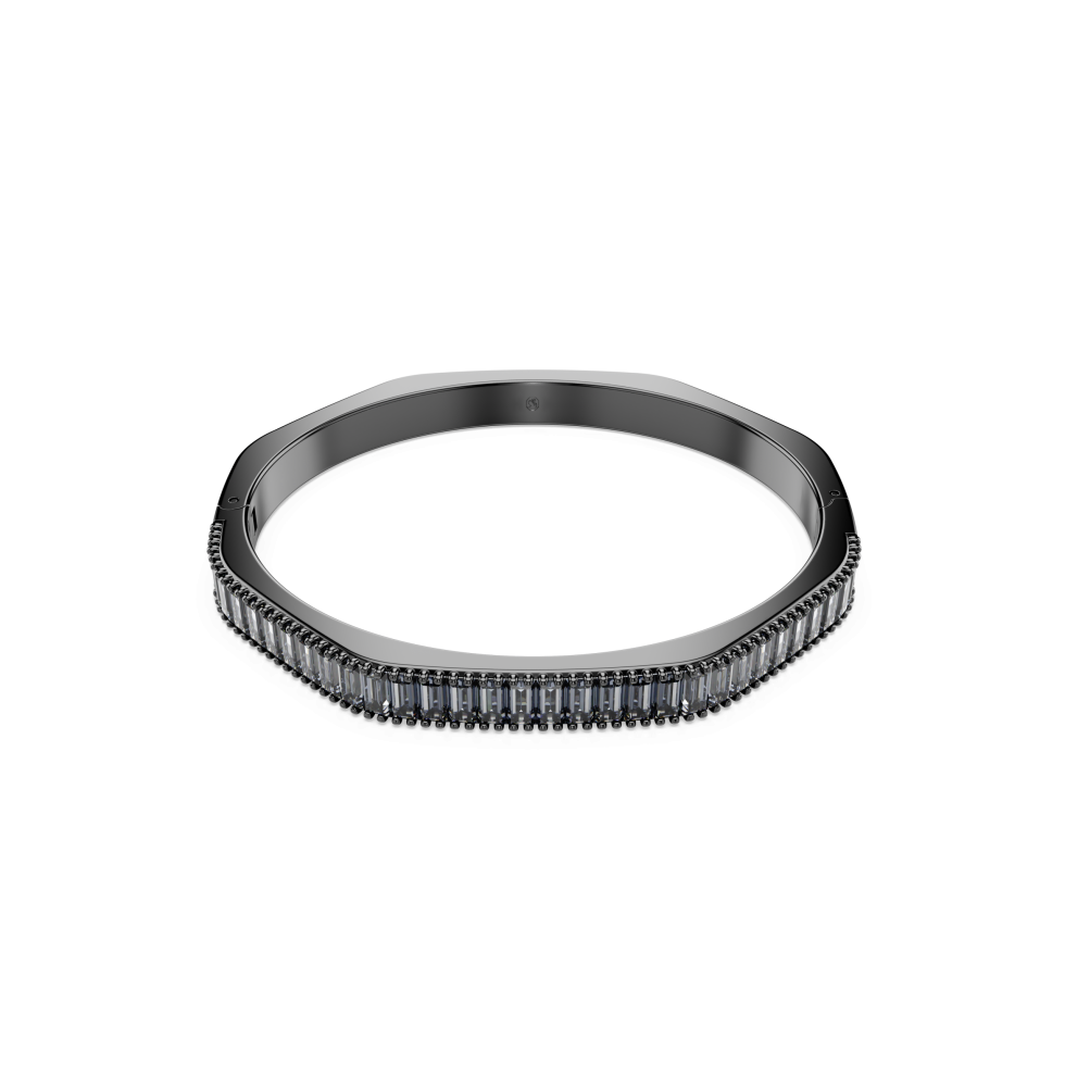 Ignite your everyday look with this intensely dazzling Matrix bangle. The ruthenium plated design is crafted in Swarovski’s emblematic octagon shape and is set with gray baguette-cut Swarovski Zirconia in a vertical setting. Perfect for stacking alongside matching Matrix bangles, it’s a full surround of deeply shaded style to express your most elegant self.